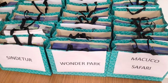 Kits com guia de segurança e adesivos para distribuição em atrativos, comércio, pontes, aeroporto e rodoviária – foto: Divulgação