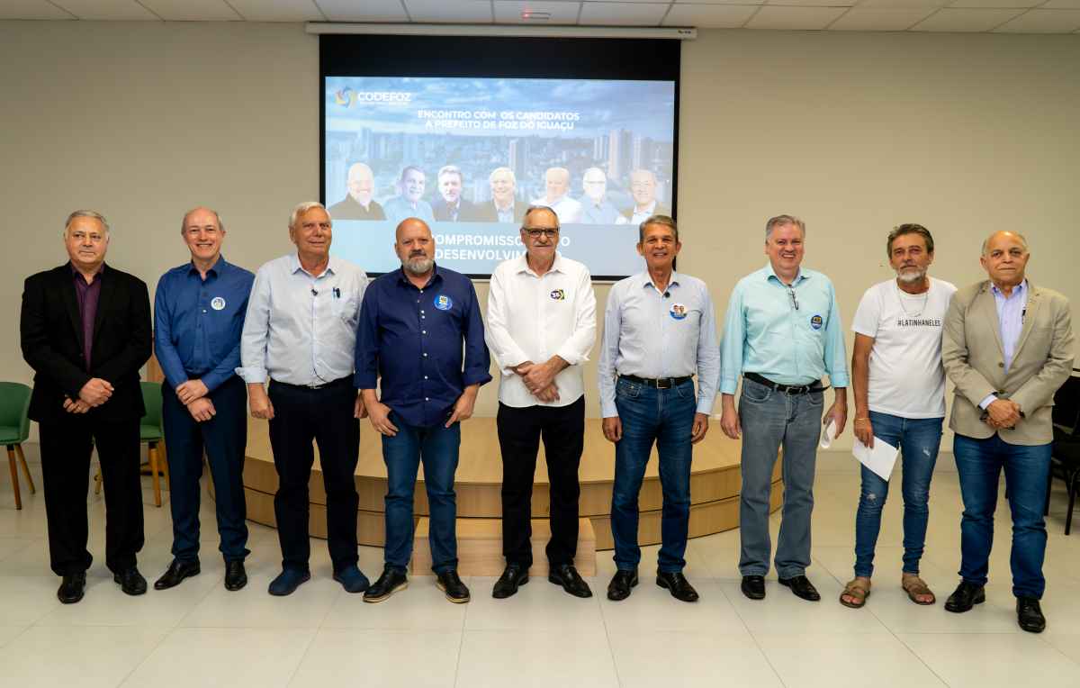 Postulantes ao cargo de gestor assinaram compromisso com as prioridades para o crescimento de Foz do Iguaçu, em plenária com lideranças e agentes públicos.